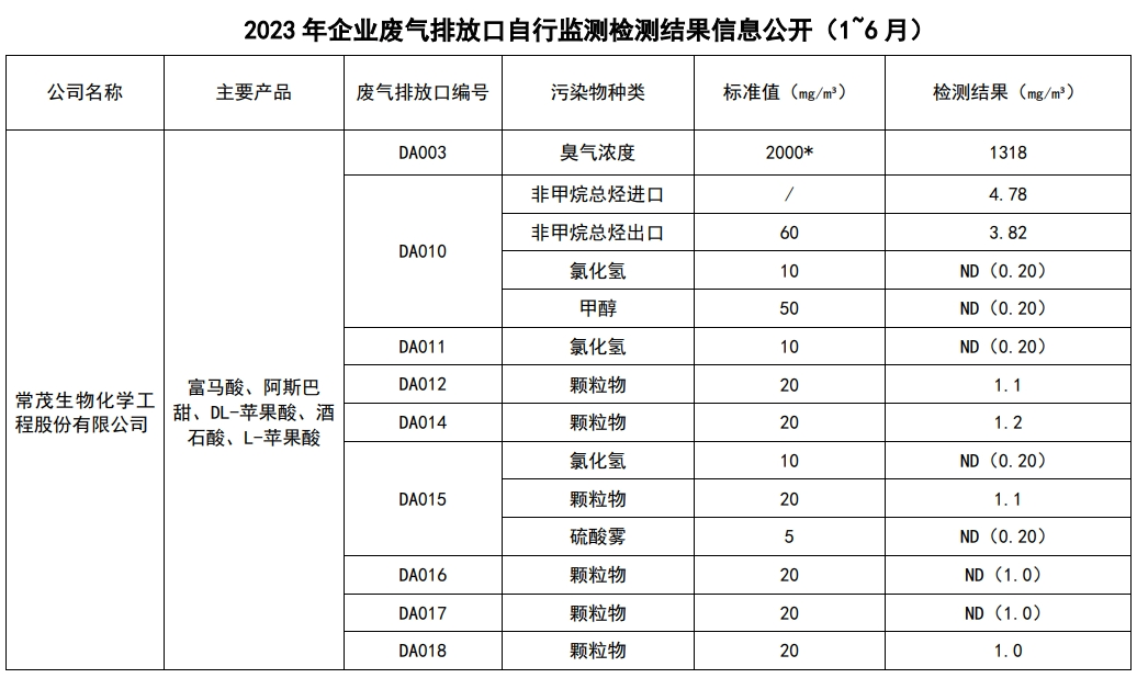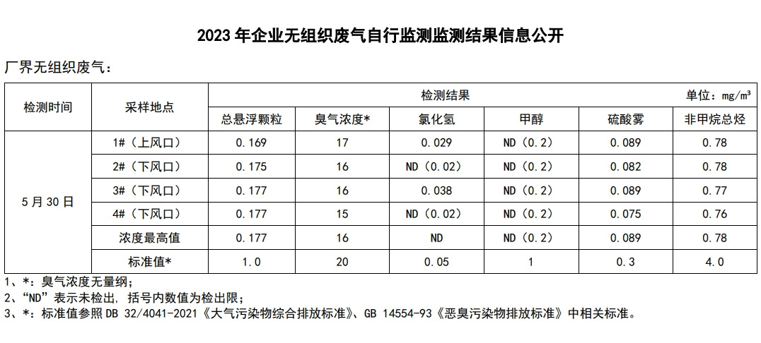2023年環保自行監測信息公開(1~6月)